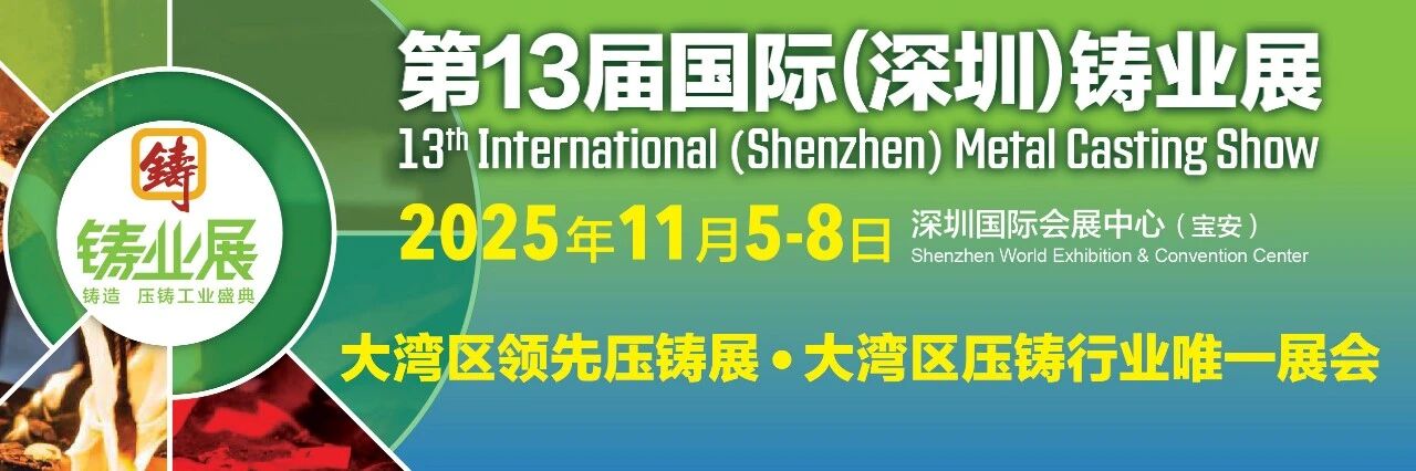 第 13 屆國際(深圳)鑄業(yè)展將于2025年11 月 5 日至 8 日在深圳國際會展中心同期舉辦。